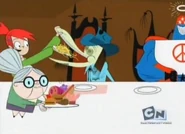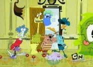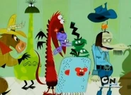 Chester and Nester's biggest role is in "Beat with a Schtick". Upon hearing that Bloo and the New Guy are going to face off, Chester tries to convince Bloo that the face-off isn't going to be as easy as he thinks it will be. Also, Nester repeatedly yells out "Bloo and the New Guy are gonna face off at four o'clock!" upon hearing the news. Later, Bloo tries to hide under Chester's hat to avoid the New Guy, only to be kicked out by Nester.