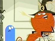 In "Bad Dare Day", Bloo dares Rodney Squiddlebeak to braid Creaky Pete's beard. It is revealed that Creaky Pete has bats living in his beard; When Rodney tries to braid it, he releases them, making him decide to quit.