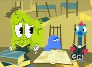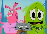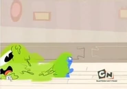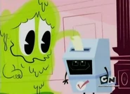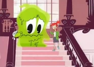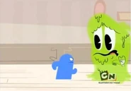 A small running gag throughout the show is that George Mucus often gets stuck to other friends or objects. In "The Little Peas", Jackie Khones complains that the Foster's elevator always runs slow, and Fluffer Nutter suggests that George might've been stuck in it (again). In "Jackie Khones and the Case of the Overdue Library Crook", Bloo desperately needs to use the bathroom, but enters the women's restroom because an incident happened in the men's restroom involving George Mucus (possibly him getting stuck in the toilet due to him being made of slime). A bumper that often aired during the show also featured Bloo getting stuck in him while trying to catch a football.