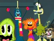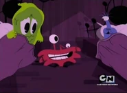 "The Bride to Beat" is the only episode where George Mucus has his own speaking role (In the episodes before this one, he only spoke along with other imaginary friends). In this episode, George tries to get Bloo's attention, only for Bloo, who is trying to stop Mac from getting married, to walk right through him.