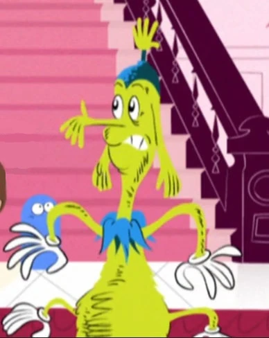 Masseusey is a green-furred, four-armed imaginary friend with a blue collar. His ears, nose and hair resemble hands. His design bears a resemblance to a Dr. Seuss character.